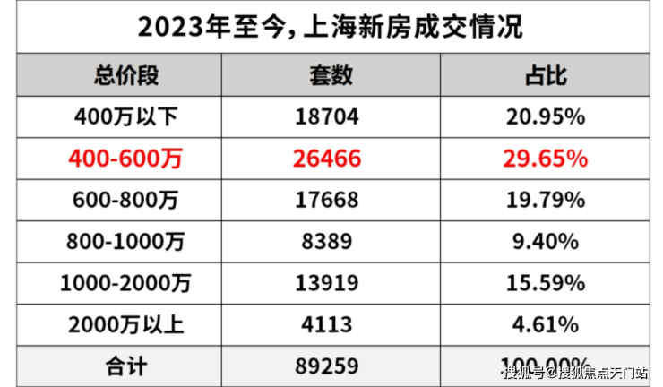 2023年以来,整个上海总价400-600万级的新房共成交2.6万套!这个价格段的购房者,依旧是上海购房大军主力!