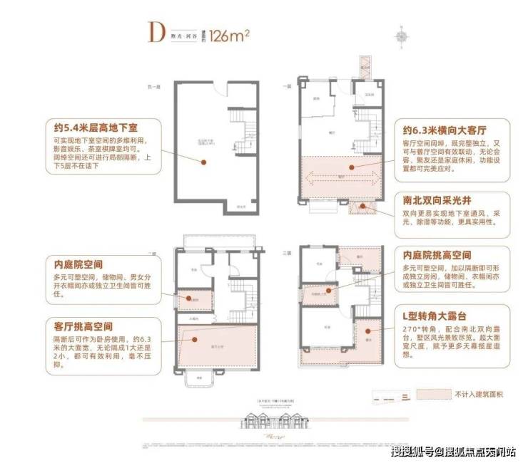 约5.4米层高地下室,纵享大尺度空间,加上大面积挑高可塑方案,可挑战N个126㎡的实用极限。