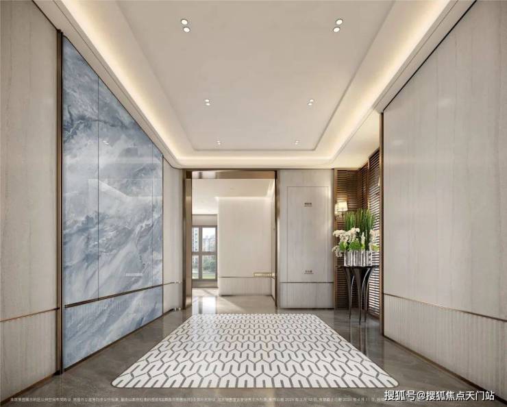 过去在豪宅项目才能看到的类似于“星空顶”地下车库坡道,招商臻境使用了看来更加高级的香槟金色吊顶,并加上穹顶闪耀的“追光”坡道!精装的地下大堂,配置了自然的采光井以及专属等候区,如同高级酒店的首层大堂,极尽礼宾仪式!精装地上大堂,地面的石材拼花造型,墙面的石材背景,将静奢海派的艺术展现的淋漓尽致!