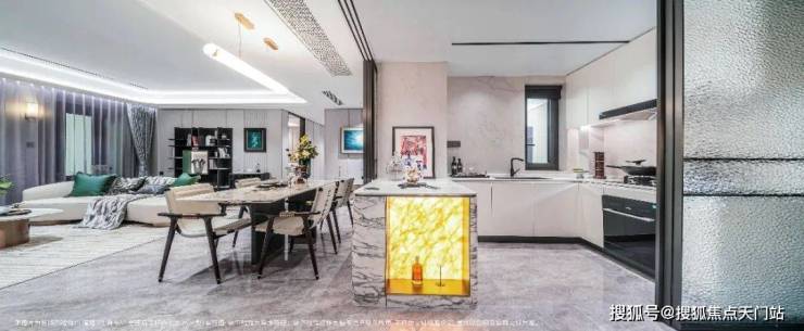 5. 整体采用了海派的装修风格,例如更耗时更费钱的带弧度的半圆形吊顶!以及当大部分项目还在用长虹玻璃时,招商臻境在厨房的三轨道移门处使用了水波纹玻璃,更具奢华感!这样的细节上次还是在看3000万级别的豪宅时才看到!