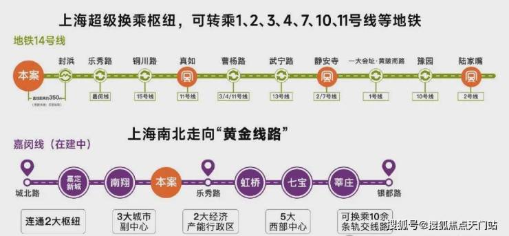 交通能级不断跃升:14号线和嘉闵线(在建中)双轨交汇,步行约200米14号线地铁口,14号线为高能级地铁线,5站普陀,30分钟直达静安,且始发有座,出行舒适;黄金走廊嘉闵线加速建设,约3站虹桥枢纽,未来可速达七宝、徐家汇、莘庄等核心区域。项目周边开泰路即将建成,绿野谷二期路段、骏达路、童家桥路、昌瑞路、涟澜路已启动建设,预计2026年建成