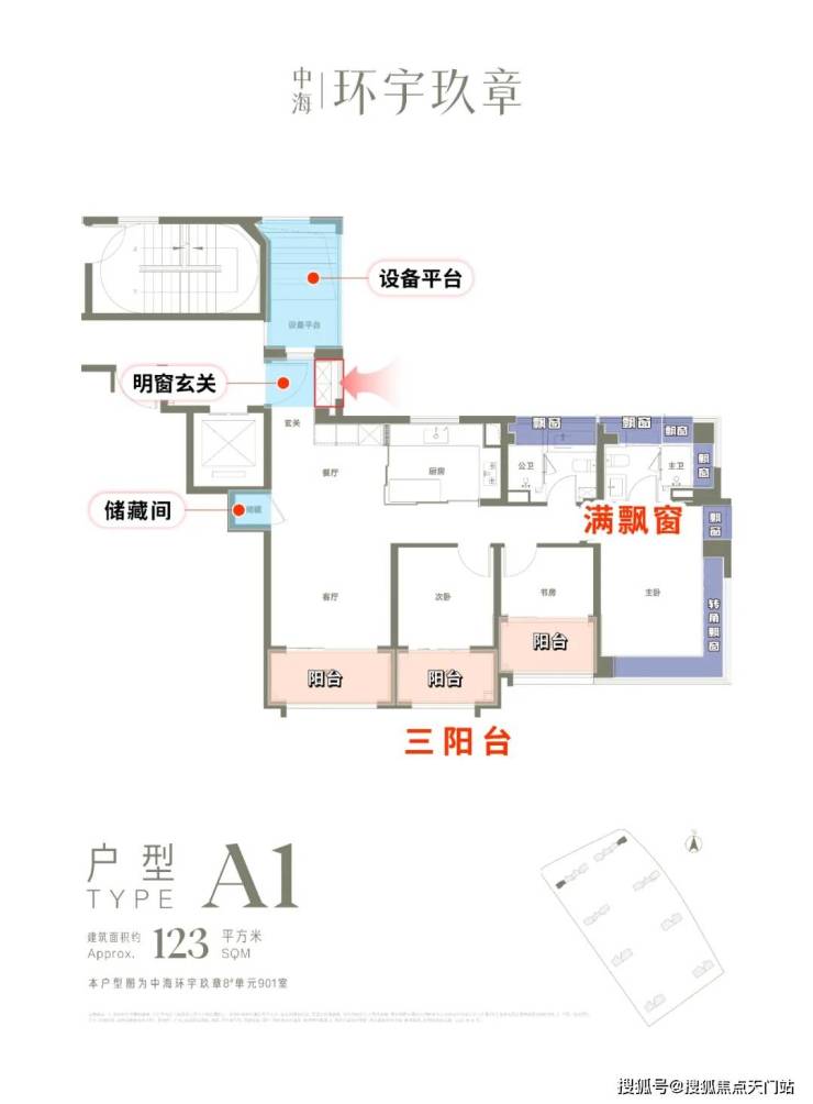 下面以123㎡3房为例,划几个重点: