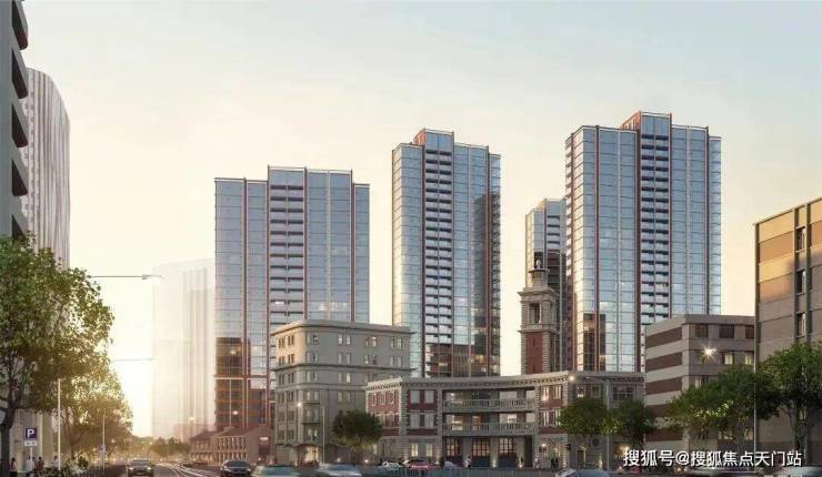 项目整体建筑非简单复古,而是以“风貌底盘一立面建筑一顶部塔冠”的三重结构向上生长,呼应“过去一现在一未来”的时代叙事。塔冠之于百老汇剧院式立面,是对历史文化的现代翻译。底盘与街区尺度融合,住户能在风貌街区之中感受历史风情,回到社区则延伸现代先锋生活,一层层传递居住的时序张力。