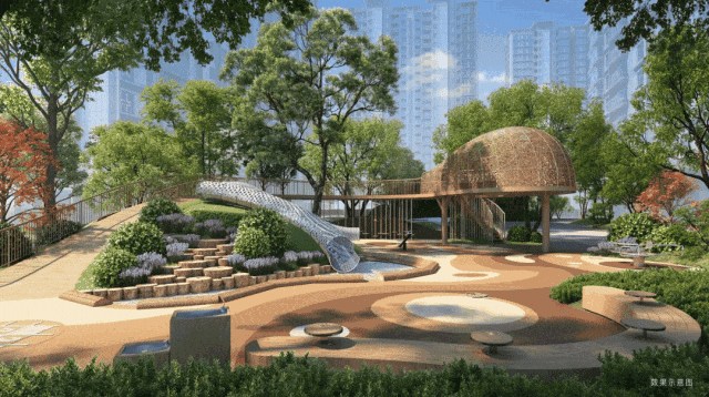 √整个杨浦滨江更大规格和能级的园林!包含约3000平的多功能会客空间、约6000平的林下全龄复合型共享空间、约2000平的全龄共享活动空间、一条全长约450m,宽约1.5m...