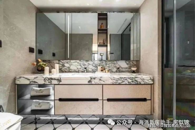 此外,室内装标同频半亿级豪宅(指单套总价半亿,下同)标准,配备嘉格纳六件套厨电(含油烟机、灶具、蒸烤一体机、洗碗机及双开门冰箱);劳芬双台盆/三折叠美妆镜柜组成的行政套房级主卫系统,并搭载华为全屋智能控制系统。