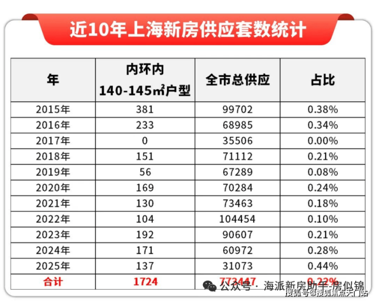静安内环占全市面积约1.8%,却集聚了全市约8.58倍教育资源、约11.84倍医疗资源、约6.34倍商业资源(数据来源:《上海统计年鉴》)。根据近10年上海新房供应数据统计,静安内环内建面约112-143㎡三四房户型供应呈现明显的稀缺性特征。