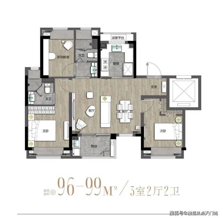 本次主推的建筑面积约96-99m²3室2厅2卫是本次的性价比王炸户型,三开间朝南超大面宽,双阳卧室南北通透,户型很抗打!建面约96m²户型样板间已开放!现可抢先预约体验!