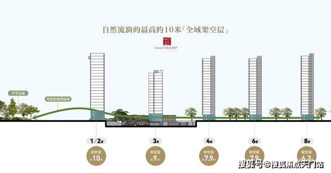 向内,项目更是以令人惊叹的魄力,打造了约6-10米超高层级全域架空设计。