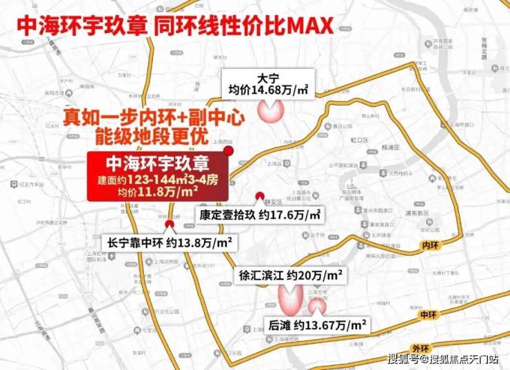 大宁新房整盘均价14.68万/㎡;天山新房均价13.68万/㎡;后滩13.67万/㎡;更别说世博、徐汇滨江奔向20万/㎡。
