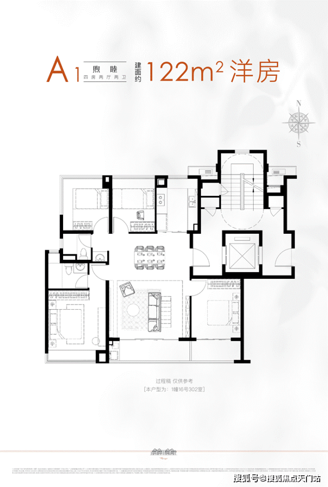建面约122m²4房2厅2卫墅境洋房,精装交付,南北通透格局,3+1飞机户型,不失功能性的同时让总价更为友好。