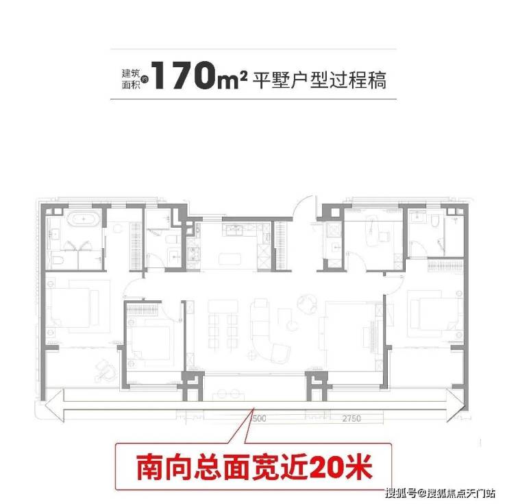 南向总面宽近20米,客厅和活动室加起来宽约9.25米,还做了双套房——主卧有独立卫生间和衣帽间,老人房也有独立卫生间,三代同堂住在一起也不挤,互不打扰。