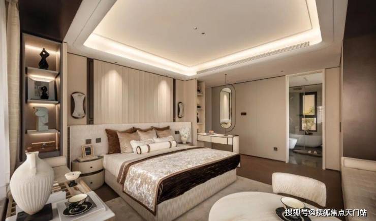 卫生间背景墙采用大面板镜柜,视觉大气统一;行业标杆排水系统吉博力静音耐用;台盆和智能马桶选用高端酒店同品牌唯宝,主卫配备美妆冰箱,带来高品质的卫浴体验。