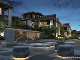 整体效果现代精致,十分符合当下年轻人的审美观;星级酒店式入户门,挑高约7米,宽约60米;石材金属线条背景墙加暖色系夜灯搭配,中庭花园水岛层叠、景墙错落,槭树青红间季节流转的温情脉脉展现,精致的水景让居住者仿若初入剧宴,感受剧目的艺术呈现……