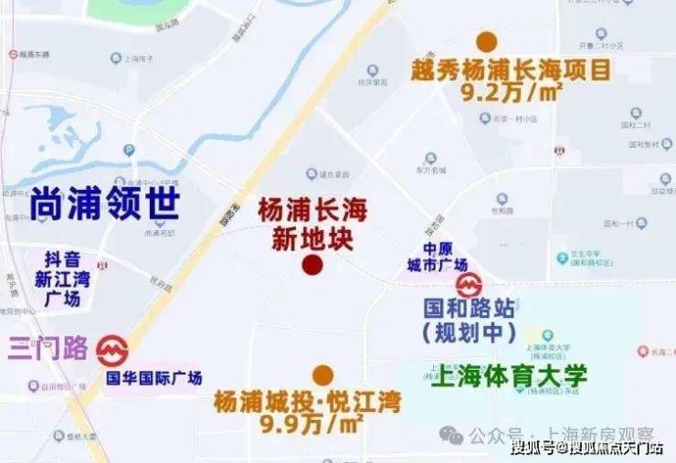 地块附近还有着杨浦第一高楼之称的“尚浦领世双子塔”,尚浦领世双子塔作为约90万方尚浦领世综合体的地标级建筑,目前一期工程已完美收官,二期预计2025年完工。