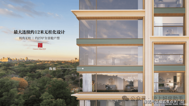 颠覆传统户型格局,打造最大连续约 12 米无柱化设计与约 270°转角无柱视野,全方位观赏自然与繁华的城市全景。结合一体化方厅,系统收纳,超大面宽,创造舒适居住体验。