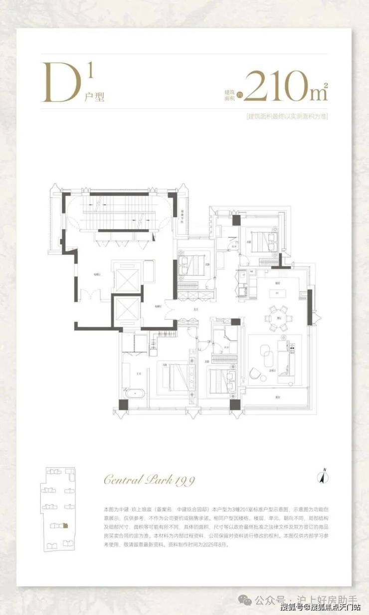 建面约210㎡,分为中间套与边套产品: