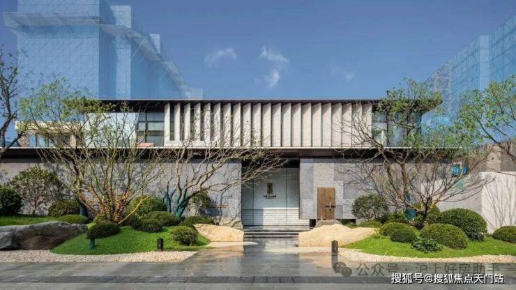 取意豫园中式园韵,打造约 99 米隐奢入口空间结合独立的车马院,风雨廊道与人车分流独立双入口,带来尊贵的归家体验。
