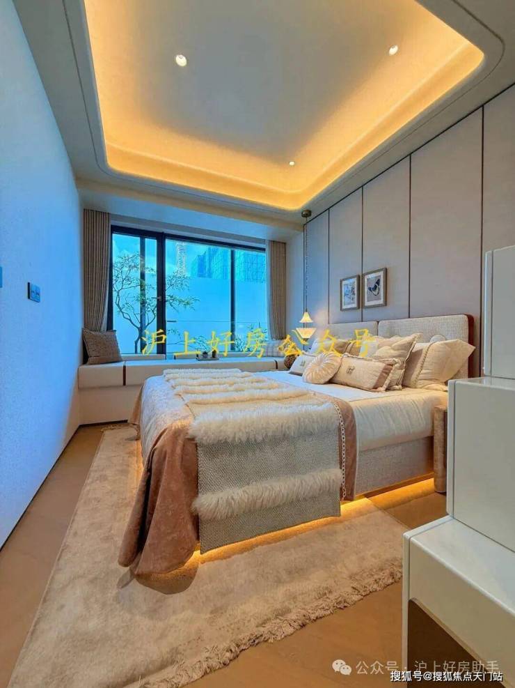 项目部分户型的主卧不仅有约270度无柱飘窗,甚至还有户型做到了上海首个最大连续约12米无柱化设计的全景舱户型!