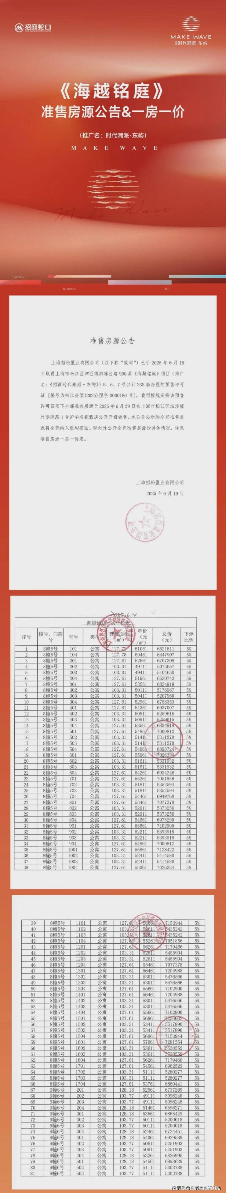 2024年1月10日,经过56路竞价,最终 招商以52.5亿摘下松江区泗泾镇SJS20005单元14-01、16-02、17-07号地块,地块位于9号线泗泾站北侧,出让面积129624.71㎡, 房地联动价51100元/㎡。