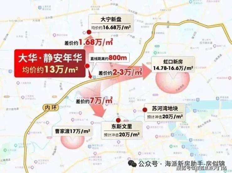 放眼整个静安区,曹家渡17万/㎡,东斯文里和苏河湾项目预计冲击20万/㎡,和大华·静安年华高层差价预计近7万/㎡。