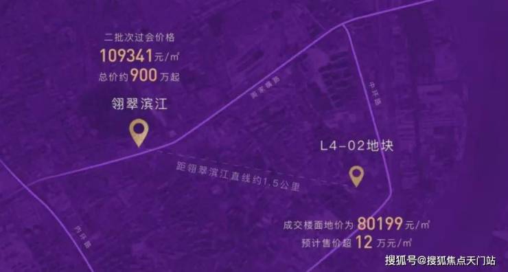新土拍的地块,预计售价12.5万+/平,它与翎翠滨江的直线距离只有1.5km;
