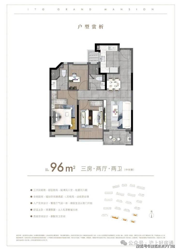 户型方面:约85-96㎡的全三房设计,每一款户型都是会传递出国贸的产品观。南北通透,布局考究,动静分离。