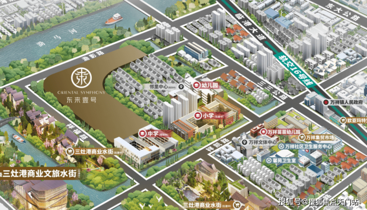 东来壹号地处临港新片区门户万祥板块的核心区域,北至祥祈路,南临祥福路、三灶港绿带以及围绕三灶港水系重点打造的“国潮文化艺术轴”商业水街,东接宝悦路与正在建设中的教育配套,西临泐影路及开阔的泐马河景观。