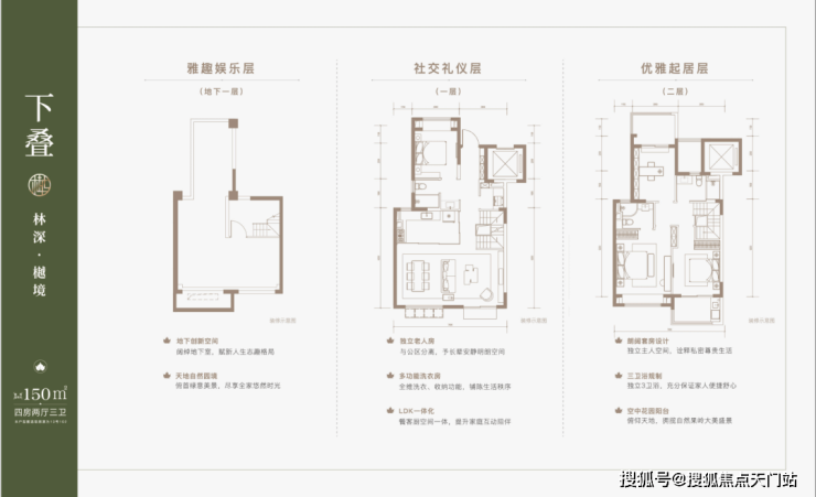 下叠附带全功能的 地下室, 可以打造成百变储藏室、茶室、会客厅、多功能影厅等。
