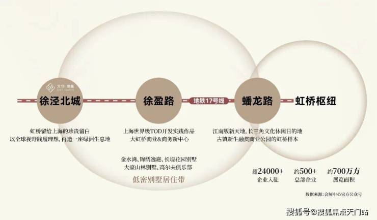 大华·望樾占据徐泾发展热土正核,距离17号线徐泾北城站仅约80米,1站徐盈路站的世界级TOD城市综合体、2站蟠龙路站的江南水岸商业中心、3站国家会展中心、4站虹桥枢纽,圆满城市精英生活的丰盛诉求。