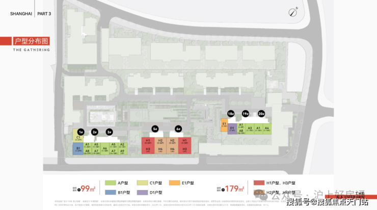 项目由6栋9-27层住宅+1栋8-14层保障房+4栋5F办公+部分商业以及配套用房组成。住宅产品面积主要有约99㎡、179㎡两种。