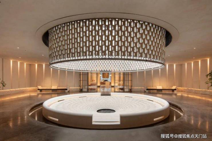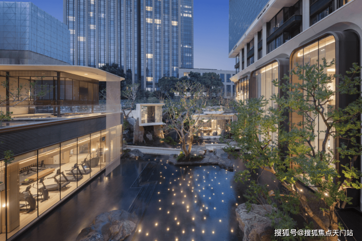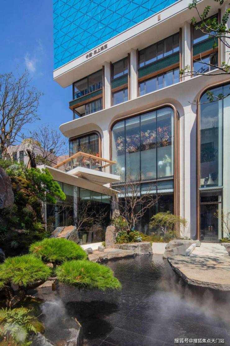 穿过门庭,看到名为“归心之境”的入口内院,方圆廊架如同天地画框,将枫树、奇石、叠水巧妙收纳,勾勒出“天人合一”的至臻画卷。
