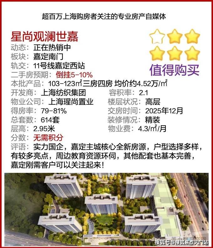 总的来说,这个约400万级的新房,在站位、地段、配套等等方面都凌驾于整个嘉定新城,跟松江、青浦以及奉贤等新城中部分约5万+新房相比,星尚·观澜世嘉的性价比更是突出。