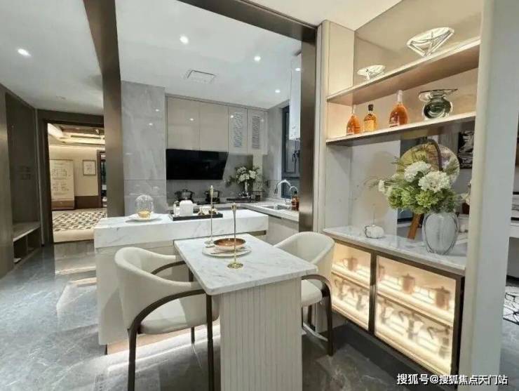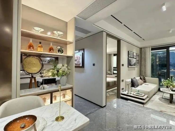 比如,高颜值时尚立面。项目立面主体造型为简洁框架设计,削弱板楼带来的沉重感,营造轻松的居住氛围。以米白色、深灰色作为整体主色调,香槟色点缀,给人以耳目一新的感觉。