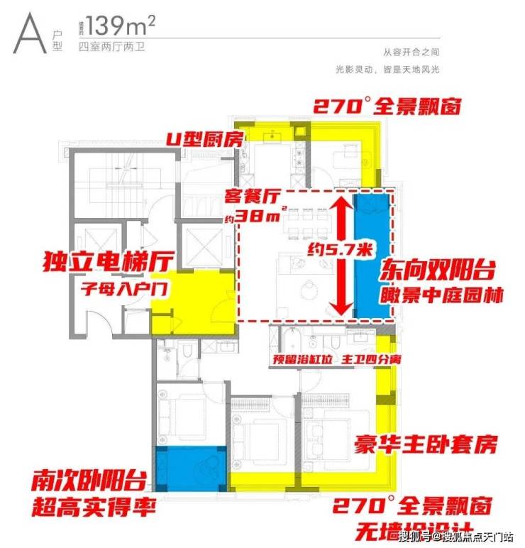 多重空间叠加,约139㎡户型的实际居住尺度甚至领先其他项目140+㎡的户型!