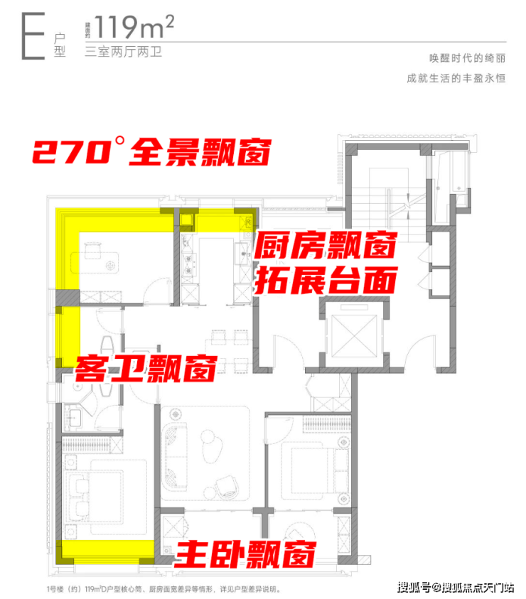 特别是部分飘窗采用无承重设计+无墙垛设计,后期可灵活调整改造,可塑性极强、实现最大限度的实现真实扩容!