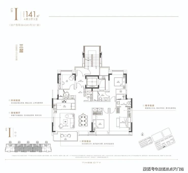 华润置地时代之城高层产品将百平上下的改善户型做出了轻奢级的居住体验,把约133㎡的改善四房做出了豪宅的尺度感。