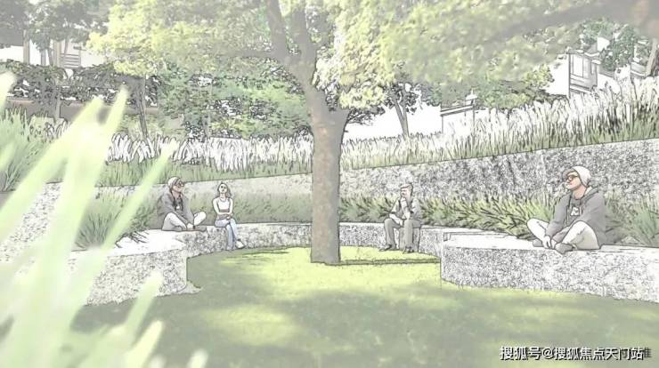 项目保留了原生在地的香樟,在地块间打造香樟聚场,这些公共绿化将三个地块串联为一座有活力的城市单元。