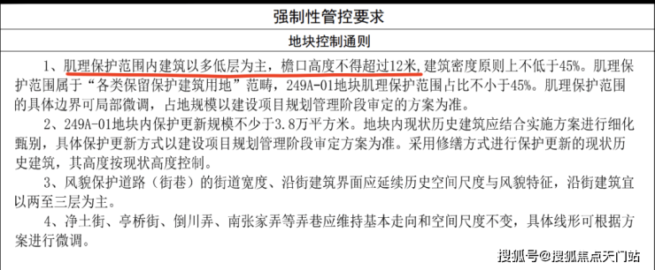 整体地块的强制性管控要求:建筑以多低层为主,檐口高度不得超过12米。