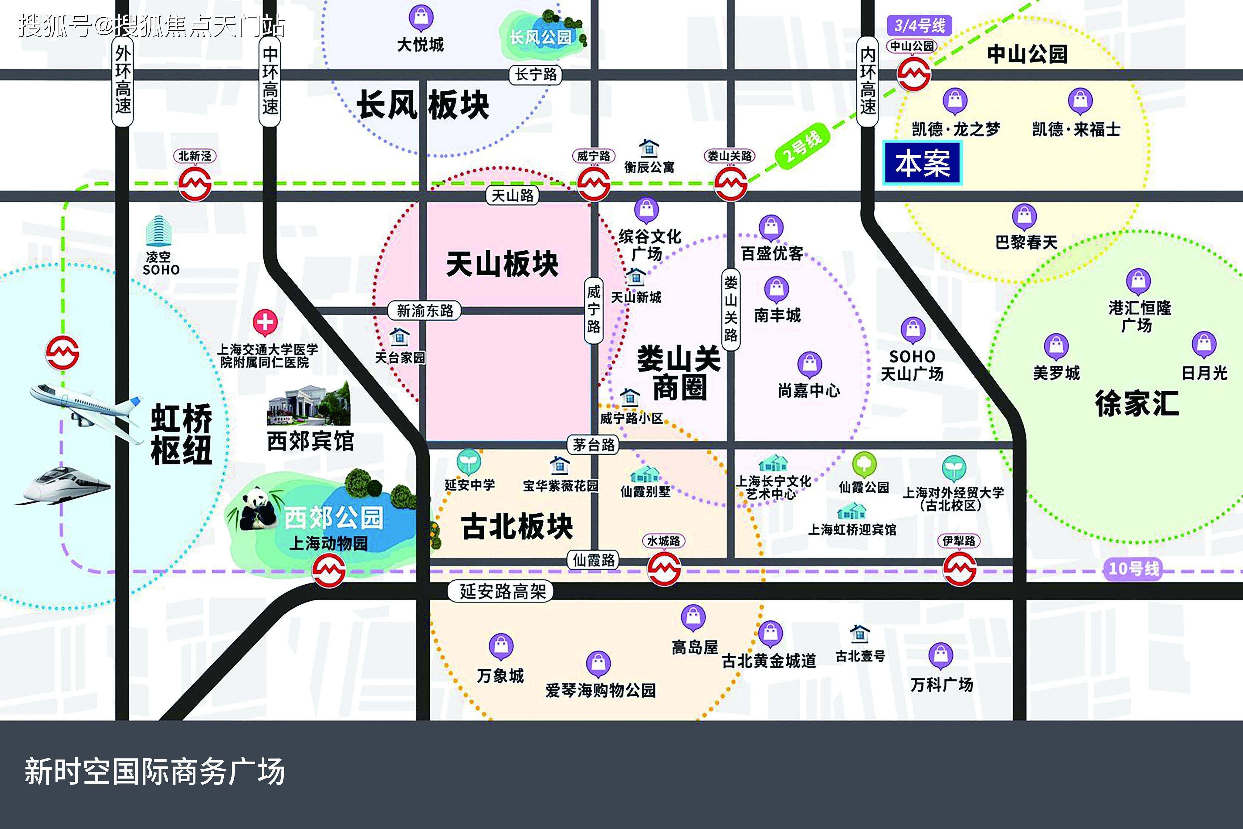 新时空国际商务广场于长宁区 · 中山公园板块,在上海西部从南到北一系列的商圈中,中山公园是一个居中的位置,又因为它的轨道交通的枢纽关系,因此来说的它其实是上海西部的一个枢纽,并且还会继续担当一个枢纽的作用。