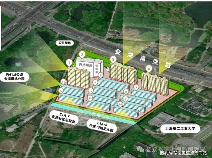 生态休闲: 更罕见的是,项目坐拥城市难以复制的公园密境! 西侧就是超600亩金海湿地公园, 总面积约 43.38万方,植被群落丰富,约56种鸟类栖息,是上海外环绿带上以湿地为特色公园,也是上海市7大湿地公园之一。