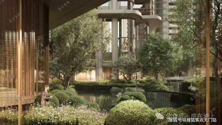 三层归家动线: 从地面景观层到架空层,再到入户层,穿越绿植、光影与水景,步步进入私域。