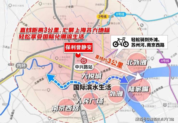而项目到外滩和平饭店的直线距离正好是约3公里!妥妥的城心烫金地段!