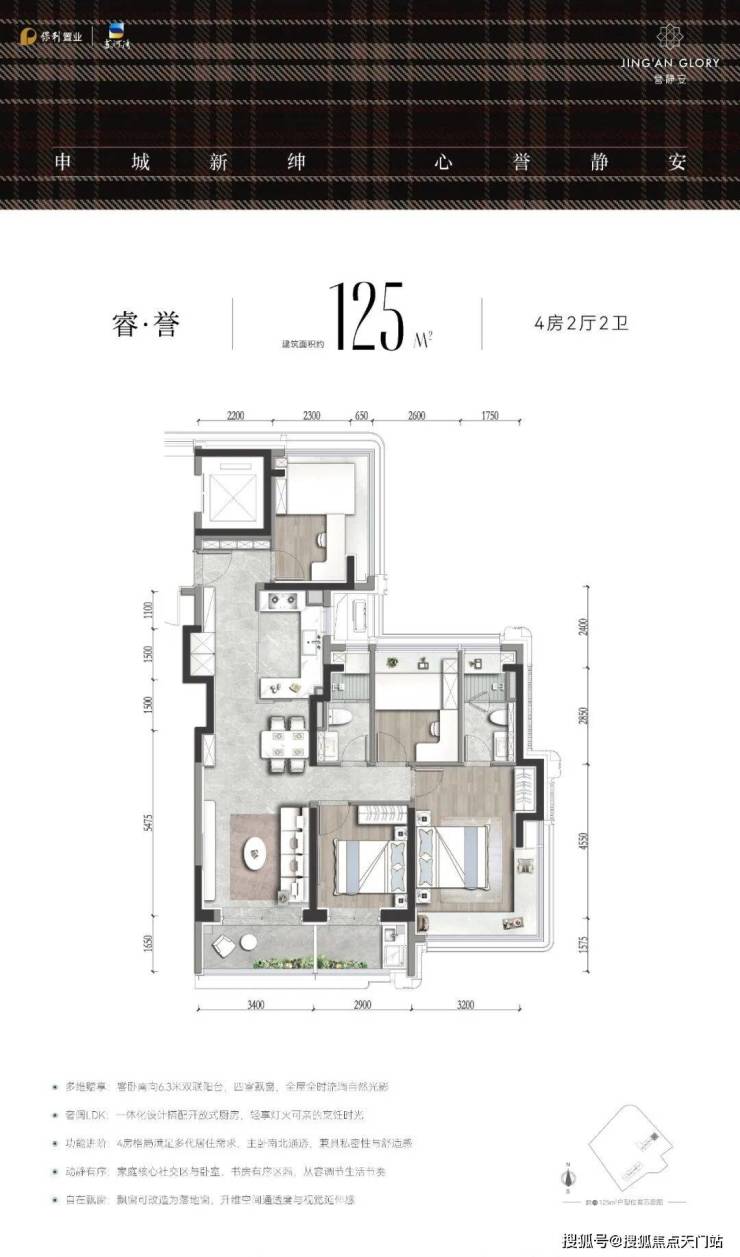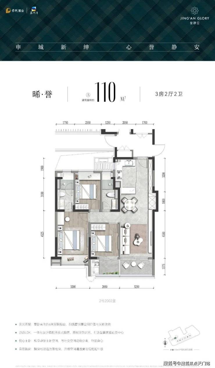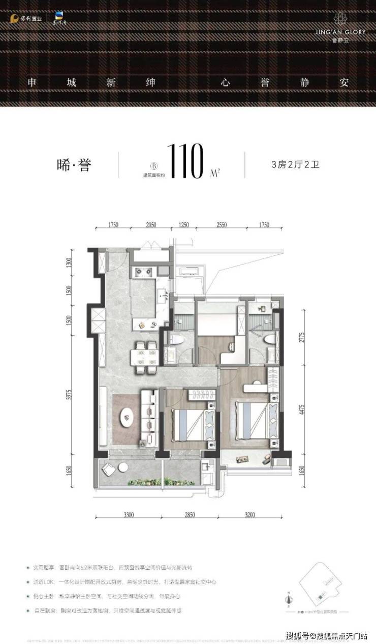 静安内环苏河湾板块,「誉静安」建面约112-119㎡3房,本次房源96套