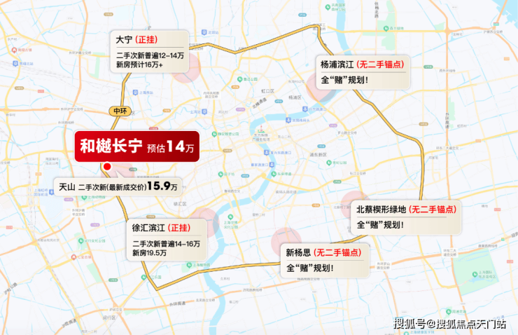 既然天山路住宅收官,我们放大视角来看周边新地:与和樾长宁同环线的吴中路光明乳品厂地块预计售价至少16-18万/㎡(旁边的古北壹号挂牌价超过22万/㎡)。与和樾长宁同2号线的中山公园地块预计售价或超过20万/㎡。