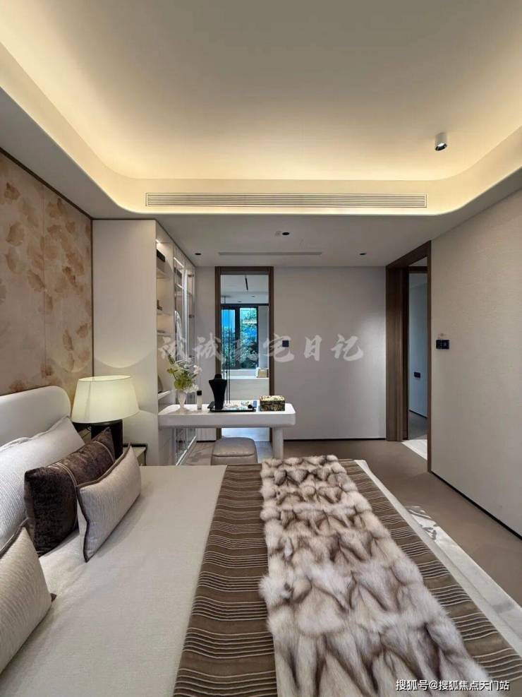 项目建面约120㎡户型是类独立电梯厅的设计,室内则是标准的南北通透+三开间朝南设计;主卧套房配置,自带卫生间,私密性和舒适度俱佳。