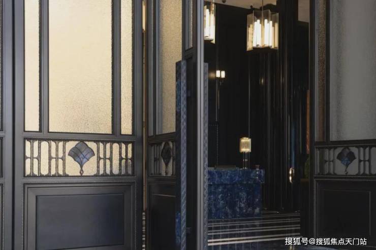 细节之处,光是一个接待台,就采用了产自玻利维亚约4500米海拔的高原矿脉——玻利维亚蓝石材,是世界上储存量最少的石材之一,非常珍贵;而大堂的柱子,也是巴西乌金奢石;