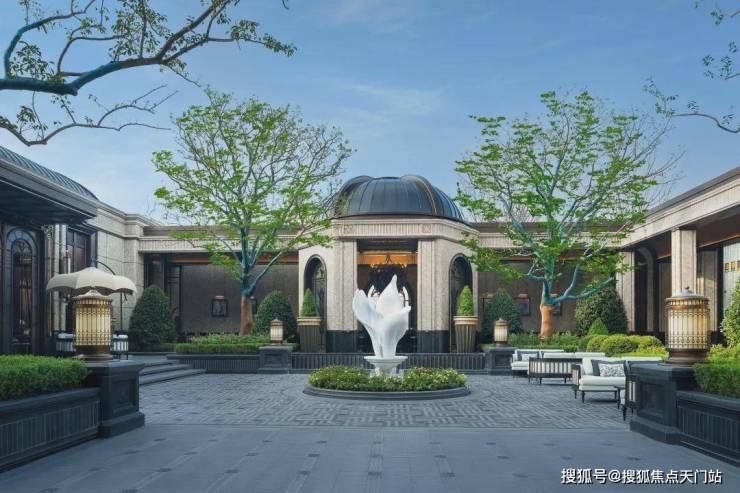 项目整体在外观上非常庄严大气,超10米的整块复古黄铜锤纹牌匾上,写着【建发海阅首府】6个大字,这经典的阵列柱式,有没有让你想到什么?
