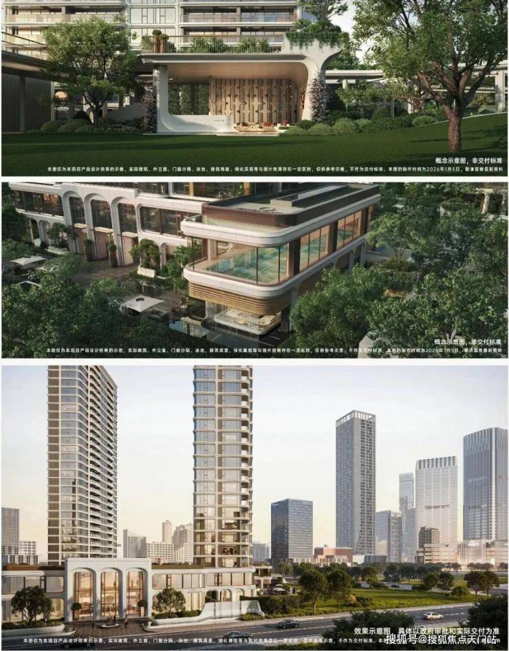 你可以看到通风、采光、景观视野更极致的地面会所和泳池,身在其中,三件套与北外滩的建筑群、社区内部的景观与北外滩中央绿地,都可以尽收眼底。