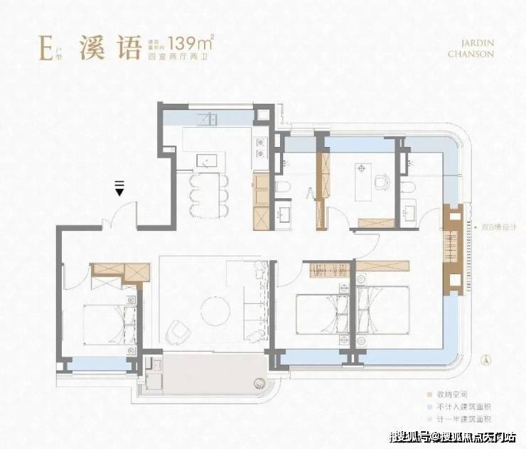 项目建面约139㎡4房则是集大成的终极改善户型。