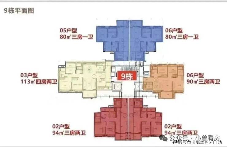 梯户楼栋分布:4、5、6栋为2梯4户,1、2、3、7、8、9栋为2梯6户,26~31层